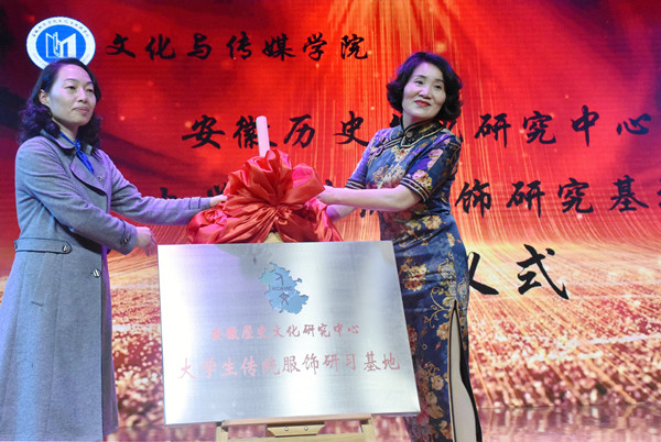 常务副校长王丽与袁同云主任共同为大学生传统服饰研究基地进行了正式揭牌。
