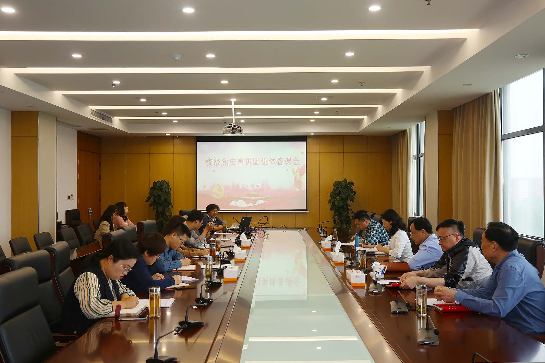 校党委书记邸建伟指出,党史学习教育宣讲责任重大、使命光荣。宣讲团成员首先要坚持宣讲的政治属性、坚持基本观点的完整性、坚持密切联系实际、坚持提升影响和效果,高标准高质量完成宣讲任务;其次,要深学细研、精心备课,吃准吃深吃透精神实质,拿出高质量、有特色的宣讲稿,要把好导向,牢固树立正确党史观;第三,要创新方式,提升宣讲实效,把鲜活的党史讲鲜活,多讲故事、多作对比,善于从“小话题”引出“大道理”,运用身边鲜活的事例、通俗易懂的语言,让大家听得懂、能领会、可落实。要面向基层,增加宣讲的针对性和说服力,营造干事创业强大气场,以优异成绩迎接建党一百周年。