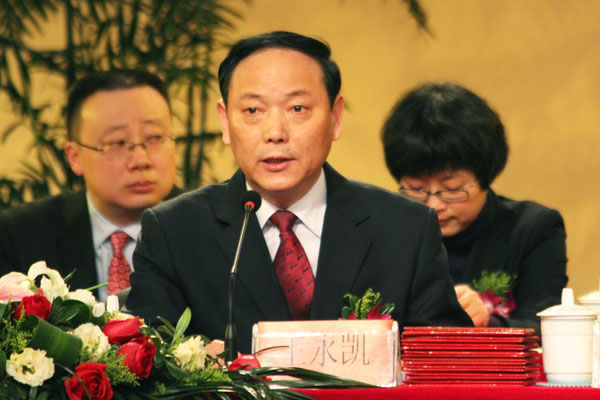 新华集团执行总裁王永凯主持会议,大会在庄严的国歌声中正式开始。