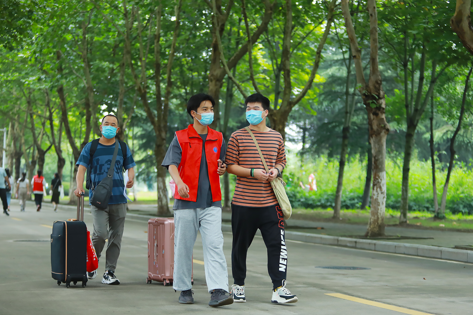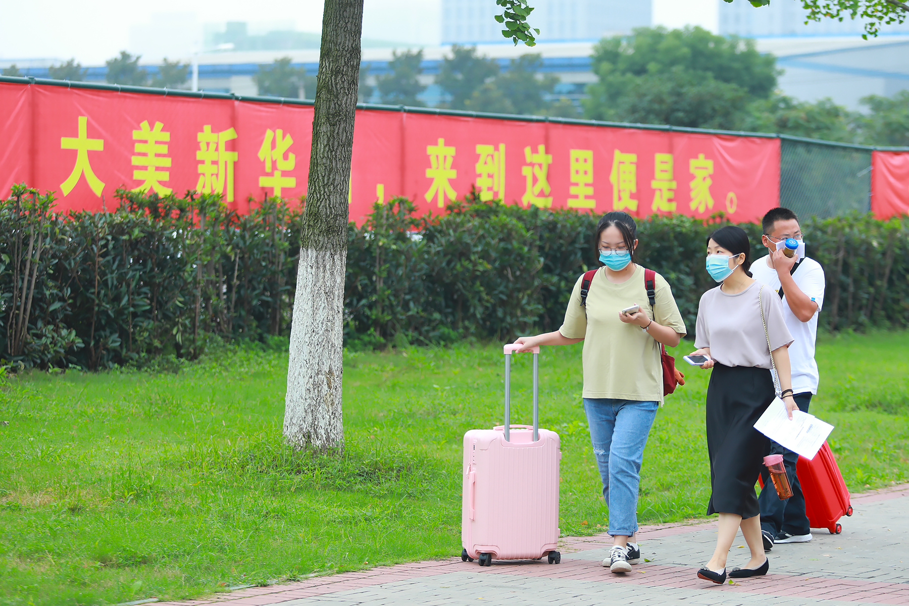 校园里,暖心的条幅、热情的老师和同学们都在迎接着新生的到来。“同学,你好!请问需要帮助吗?”厚德路上,由学长学姐们组成的志愿团队积极为新生提供帮助。同时,为了让新生能更方便地办理入学报到手续,每个二级学院均设有专门的报到点,并分配了志愿者进行引导,帮助新生尽快完成注册报到手续。