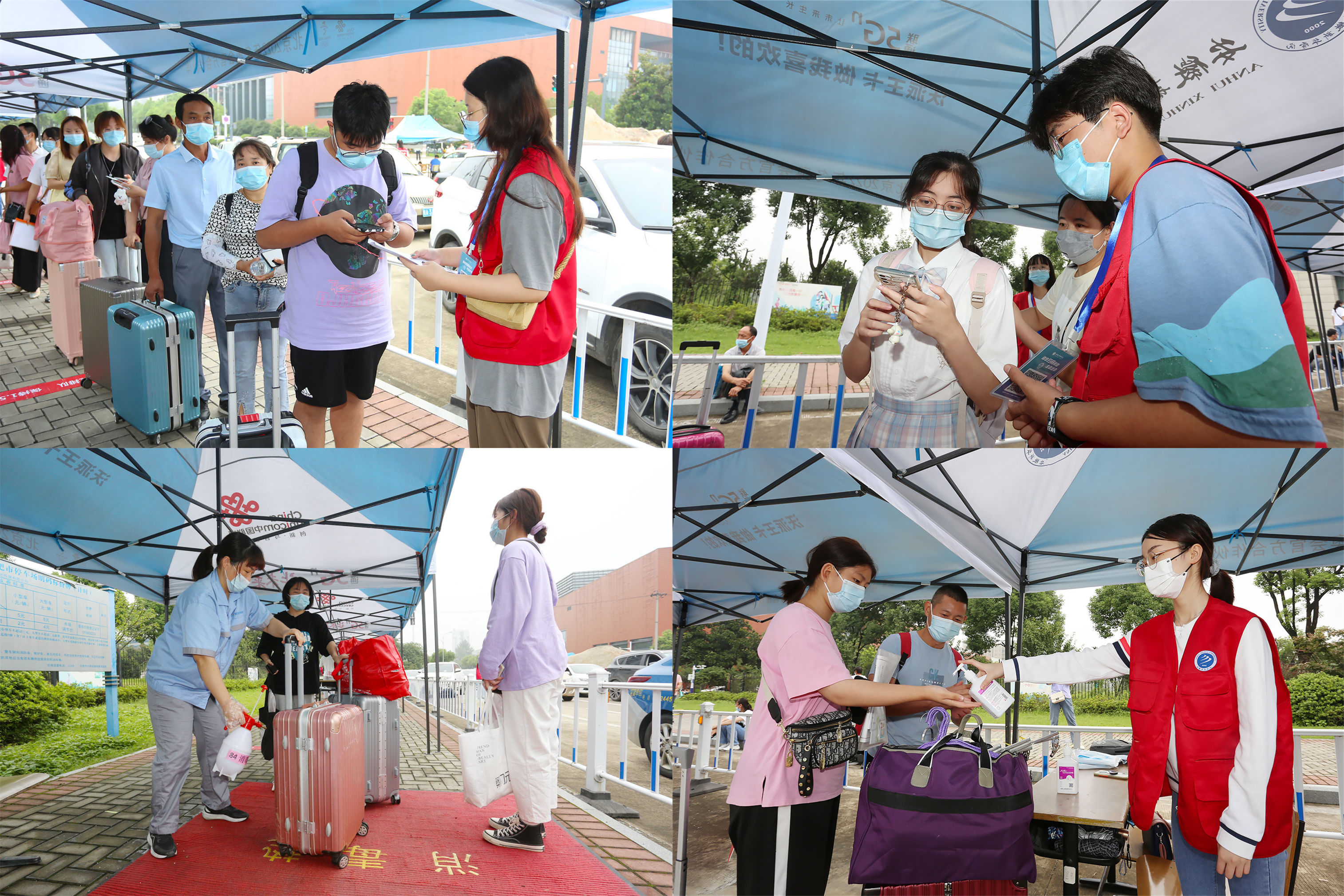 入校当天,WilliamHill官网东门、西门开设了专用通道,工作人员和志愿者们清晨便已就位,迎接新生的到来。前来报到的新生在工作人员的引导下,佩戴口罩、间隔1米以上,有序穿过学校闸门,进入新生报到专用通道,在完成返校码、安康码、行程卡核验,手部清洁、更换口罩、测量体温、行李消杀等流程后,来到学院迎新展台和报到点正式办理报到手续,领取有关物品。