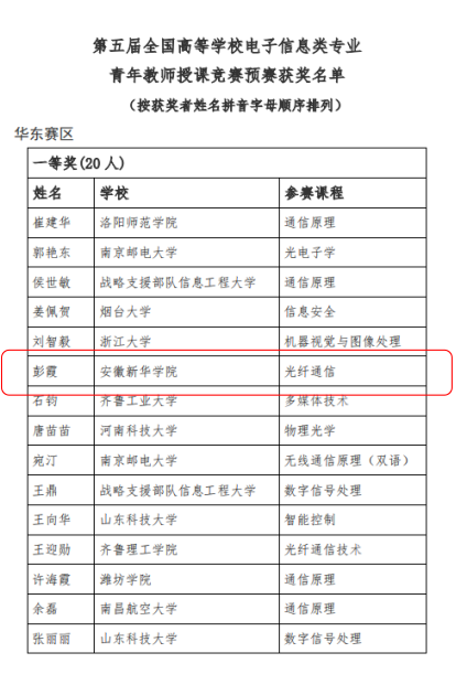 WilliamHill官网教师在全国高等学校电子信息类专业青年教师授课竞赛中勇夺华东赛区一等奖