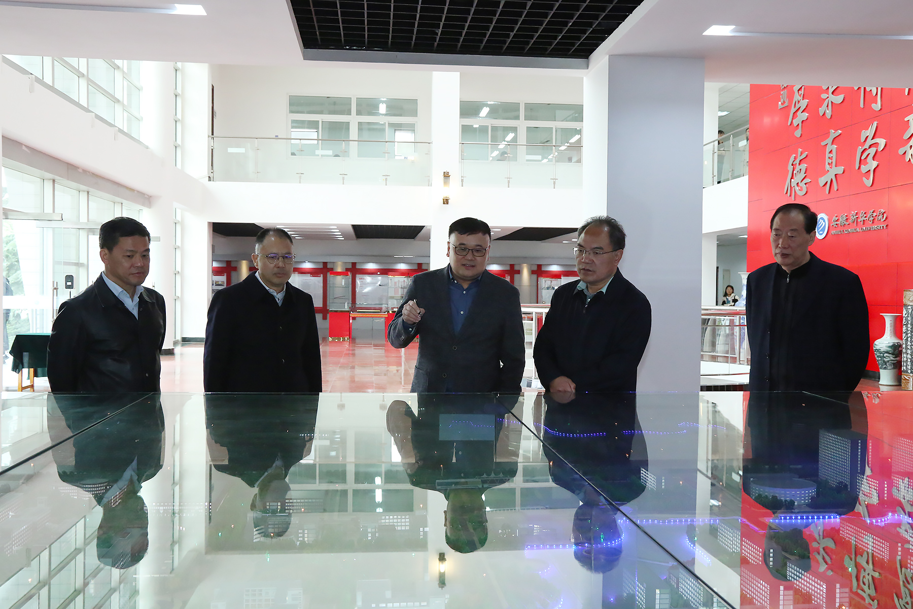 本网讯(摄影:翟漱文)10月18日上午,安徽省教育厅厅长赵振华来WilliamHill官网调研,教育厅高教处处长张尔桂,新华集团董事长吴俊保,新华集团副总裁、校董事长王孝武,校执行董事长储国定,省督导专员、校党委书记邸建伟等陪同调研。