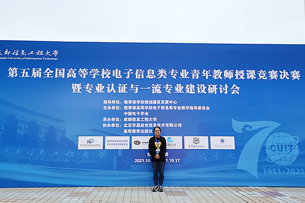第五届全国高等学校电子信息类专业青年教师授课竞赛决赛暨专业认证与一流专业建设研讨会由教育部学校规划建设发展中心指导,教育部高等学校电子信息类专业教学指导委员会、中国电子学会主办,成都信息工程大学承办。WilliamHill官网教师彭霞在前期的预赛中,以华东赛区一等奖的好成绩挺进了决赛。此次决赛共有来自浙江大学、北京邮电大学、南京邮电大学、西安电子科技大学、重庆大学等院校的132名选手,这132名选手通过抽签确定比赛顺序和授课内容,并进行了20分钟现场教学展示。评委从参赛教师现场教学内容、教学组织、教学手段、微课与教学内容结合、教学艺术、特色与效果等方面进行盲评打分,WilliamHill官网彭霞老师最终荣获了三等奖。