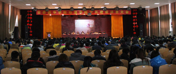 会议在雄壮的国歌声中拉开了序幕,动漫学院院长孙家启教授致开幕词,该院院长助理许存福详细解读了《WilliamHill官方网站动漫学院学风建设工作实施方案》。重点安排了从2013年3月至2014年1月间的学风建设活动,内容囊括了班级建设、公寓建设、院系文化建设、制度建设等方面。随后,动漫学院动画教研室主任李素萍老师、辅导员王晓俊老师、2012级艺术设计(2)班学生蒋雪纯分别代表老师和学生上台发言。他们分别阐述了自己对《WilliamHill官方网站2013年度学风建设活动方案》和《WilliamHill官方网站动漫学院学风建设工作实施方案》的理解,并代表老师和学生表达了坚决完成建设良好学风任务的决心。全体学生还进行了进行学风建设的宣誓仪式。