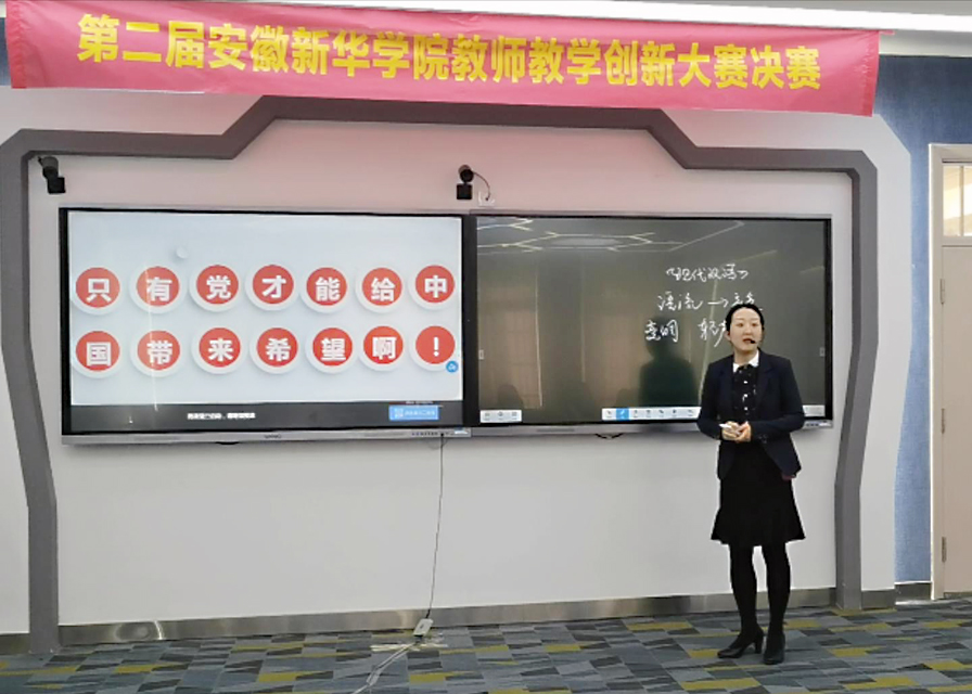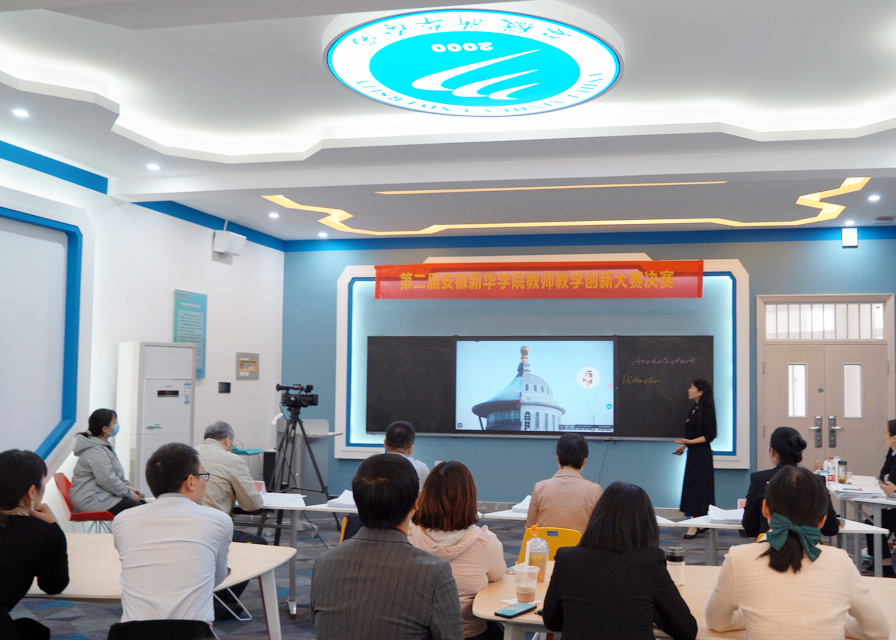本网讯(通讯员:王宁)为进一步加强教师队伍建设,促进教师之间交流学习,全面提高WilliamHill官网教师教学技能与水平。教务处于11月3日下午2点在智慧教室成功举办了第二届WilliamHill官方网站教师教学创新大赛。本次大赛评委由安徽大学吕萌教授、合肥师范大学孙晓青教授,以及王琦进、吴约、卓爱平、蔡冬梅等8位校内外专家组成。