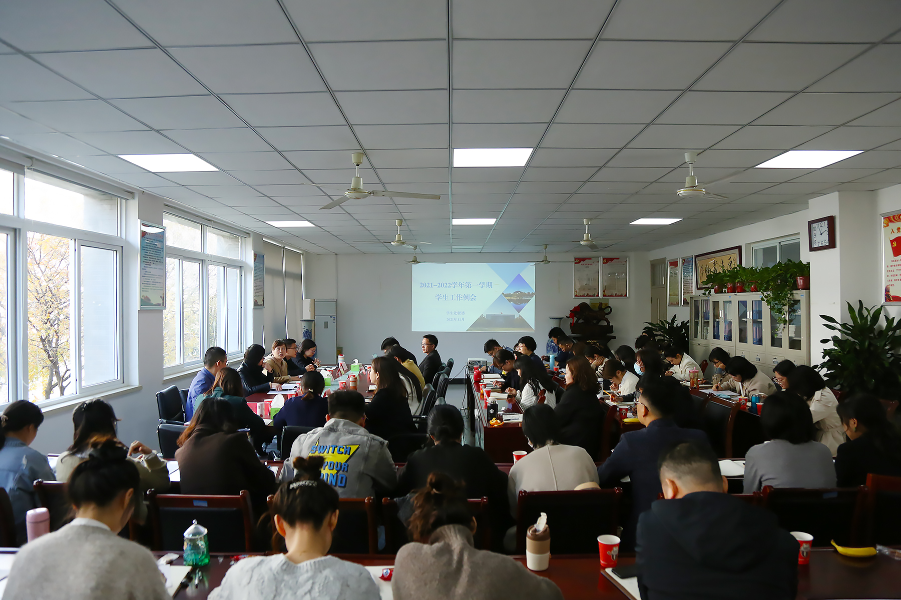 本网讯(通讯员:汪竹欣 摄影:翟漱文)11月19日,2021-2022学年10-11月学生管理工作例会在财会与金融学院召开,校长助理邵玲、学生处/团委副处长(主持)郑妮、保卫处副处长(主持)仇陶、各二级学院分管学生工作副院长/院长助理、学管秘书、行政秘书及辅导员代表、学生处/团委全体人员出席会议。会议由郑妮主持。