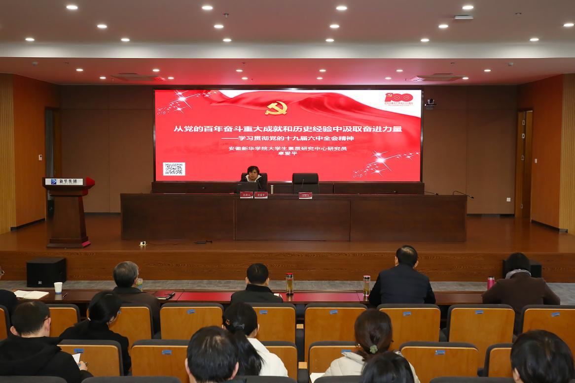 卓爱平从“中国共产党无愧为伟大、光荣、正确的党”“中国共产党百年奋斗书写中华民族几千年最恢宏的史诗”“中国共产党在总结历史积累的宝贵经验中更好开辟未来”三个方面对党的十九届六中全会精神进行了深入的阐述和系统的讲解。