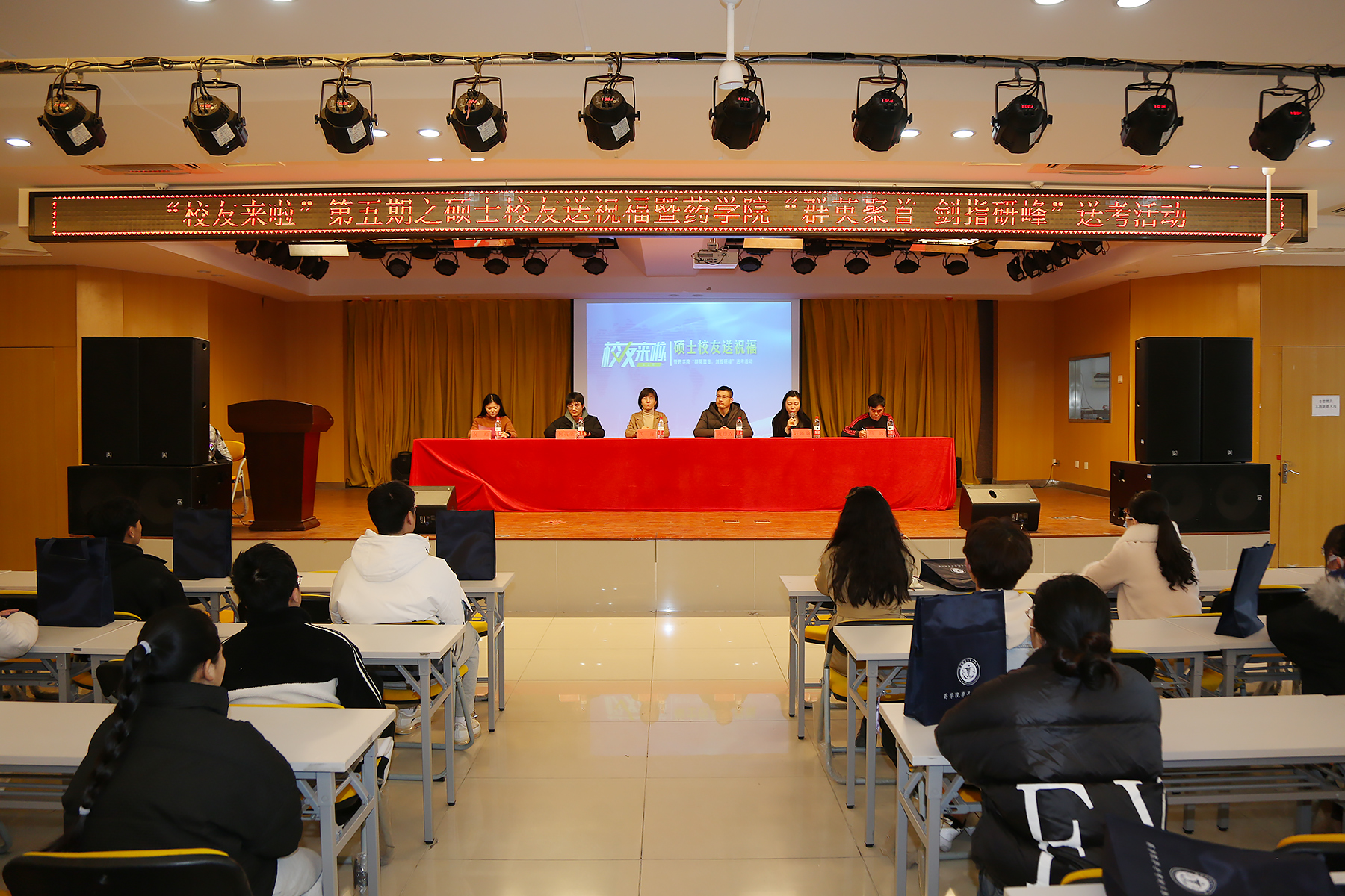 本网讯(通讯员:朱格格、陈鹏 摄影:翟漱文)12月15日,WilliamHill官网药学院举办了“校友来啦”第五期之硕士校友送祝福暨药学院“群英聚首 剑指研峰”送考活动。药学院执行院长黄德垚、校友办主任芮萍,硕士校友何英豪、吴琼、胡波以及180名考研学子代表出席活动。活动由药学院院长助理汪涵涵主持。