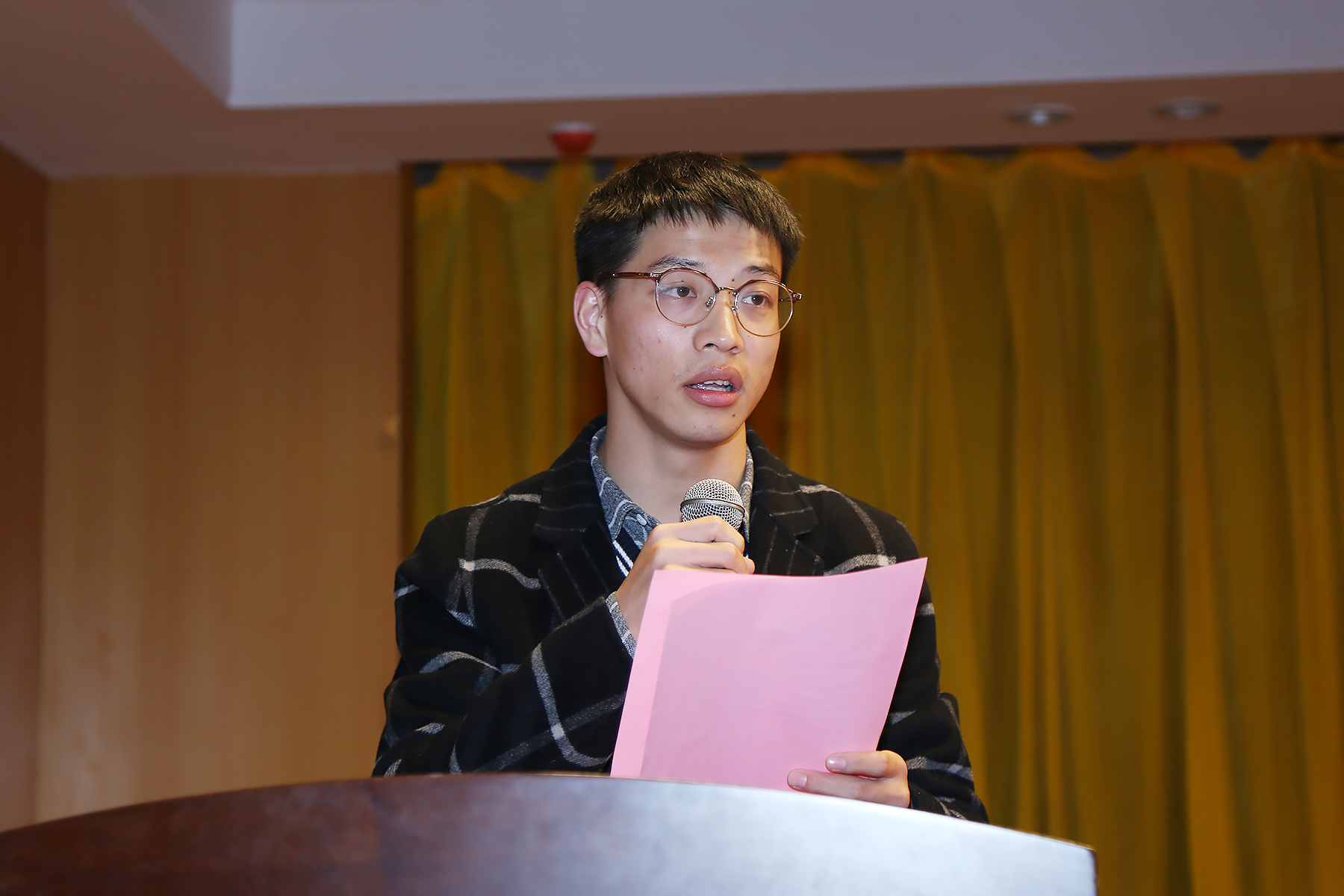 杨培正作为2018级考研学生代表上台发言,他表示将拿出披荆斩棘的勇气,以最饱满的热情和最饱满的斗志,努力拼搏,奋勇向上,取得考研的胜利,同时也对学校领导老师的关心与支持表达了衷心的感谢。