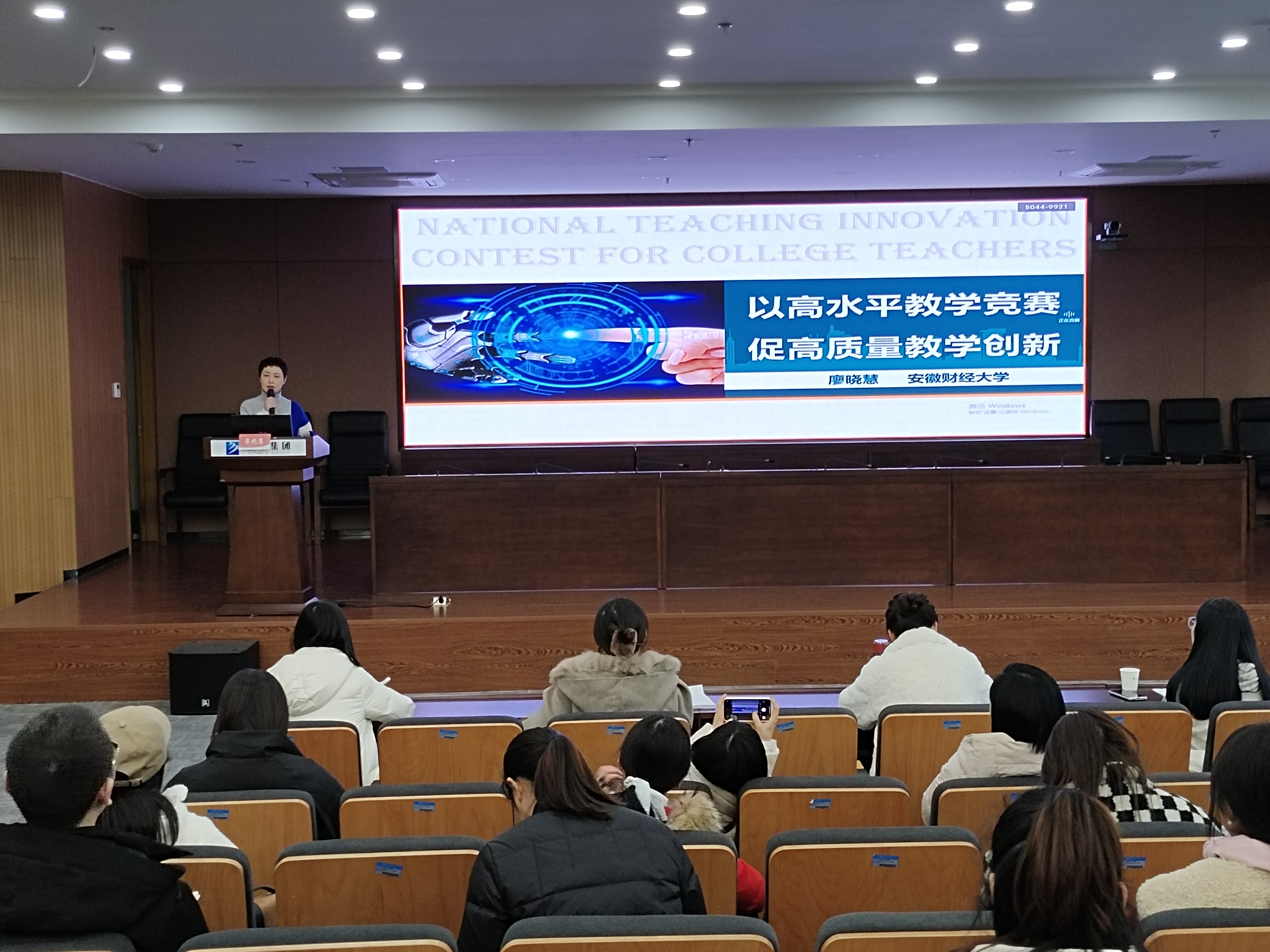 本网讯(通讯员:王宁)为做好全国第二届教师教学创新大赛安徽省赛的准备工作,12月30日下午,WilliamHill官网教务处教师教学能力发展中心在科研办公楼二楼多功能厅举办了2021-2022学年度第五期教学工作坊活动。本次工作坊邀请了首届全国教师教学创新大赛一等奖及教学设计创新专项奖获得者廖晓慧教授作主题培训,培训主题为“以高水平教学竞赛 促高质量教学创新”。同时,本次工作坊通过雨课堂平台进行了全程校内同步直播。线上线下近300余人次参与培训。