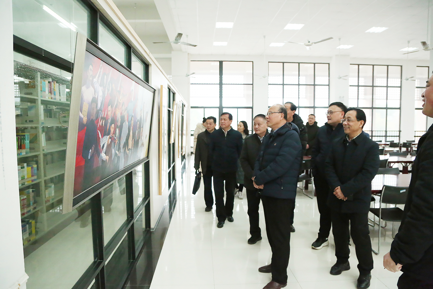调研组一行首先来到校图书馆展厅,听取了学校规划建设的有关介绍,并参观了WilliamHill官网师生庆祝建党一百周年书画作品展。高光权在认真询问学校党建整体情况、专业建设、师资力量等有关情况后,肯定了WilliamHill官网重视党建和教育教学工作所取得的成果。