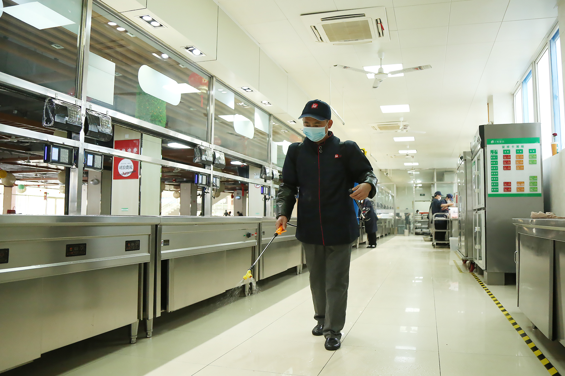 学校后勤部门加强宿舍、教学楼、班级、楼道、食堂、快递等公共区域环境消杀,引导师生保持开窗通风,养成良好卫生习惯。食堂实行分时、分区、分批错峰就餐,落实单项流动、进门测温、佩戴口罩、洗手消毒、“一米线”等措施。加强餐饮的清洁消毒,做到“一人一具一用一消毒”。