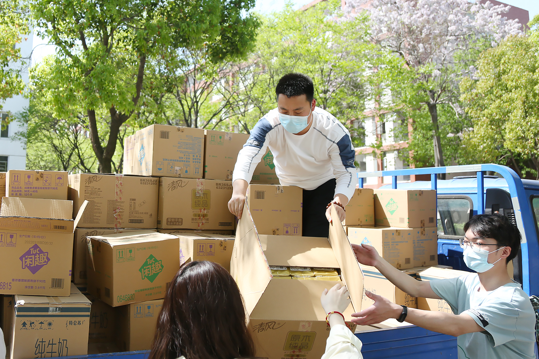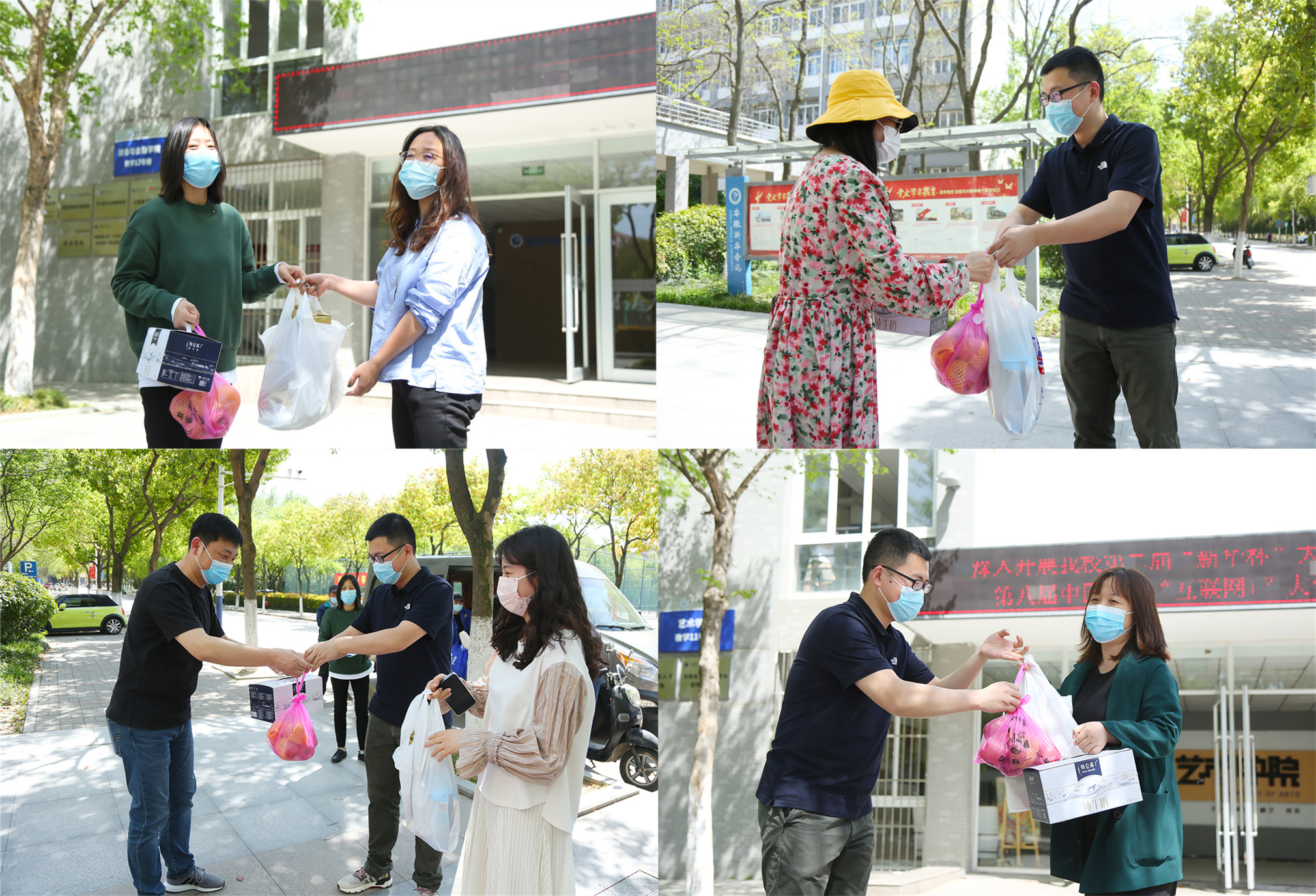 本网讯(通讯员:翟漱文)今年春季开学返校起,WilliamHill官网开始有序开展疫情防控工作。在这个特殊时期,全体教职工第一时间转入战“疫”模式,专人专岗、昼夜坚守,始终奋战在防控疫情最前线。校领导多次带队实地检查指导,看望慰问一线工作人员,一幕幕暖心画面在校园里上演。4月8日下午,奋战在防疫一线的工作人员收到了学校送来的爱心礼包。