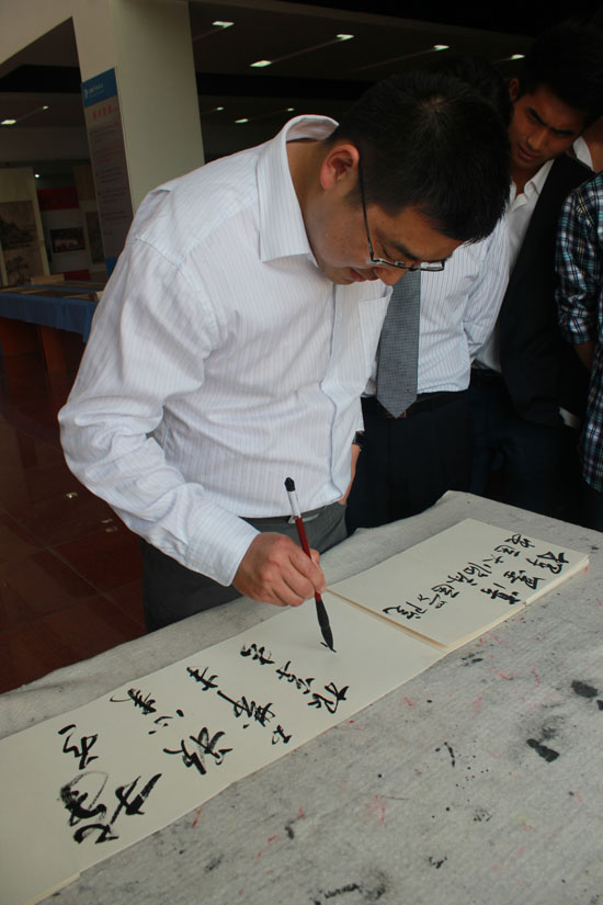 本网讯(学生记者 华云)4月17日,合肥久留米友好美术馆在WilliamHill官网开展馆藏书画珍品高校巡回展WilliamHill官方网站站的展览活动。上午10点,展览活动开幕式在图书馆举行,副院长倪征,合肥市委宣传部副部长、文联党组书记陈飚,合肥文联副主席刘晓明等出席了开幕式。