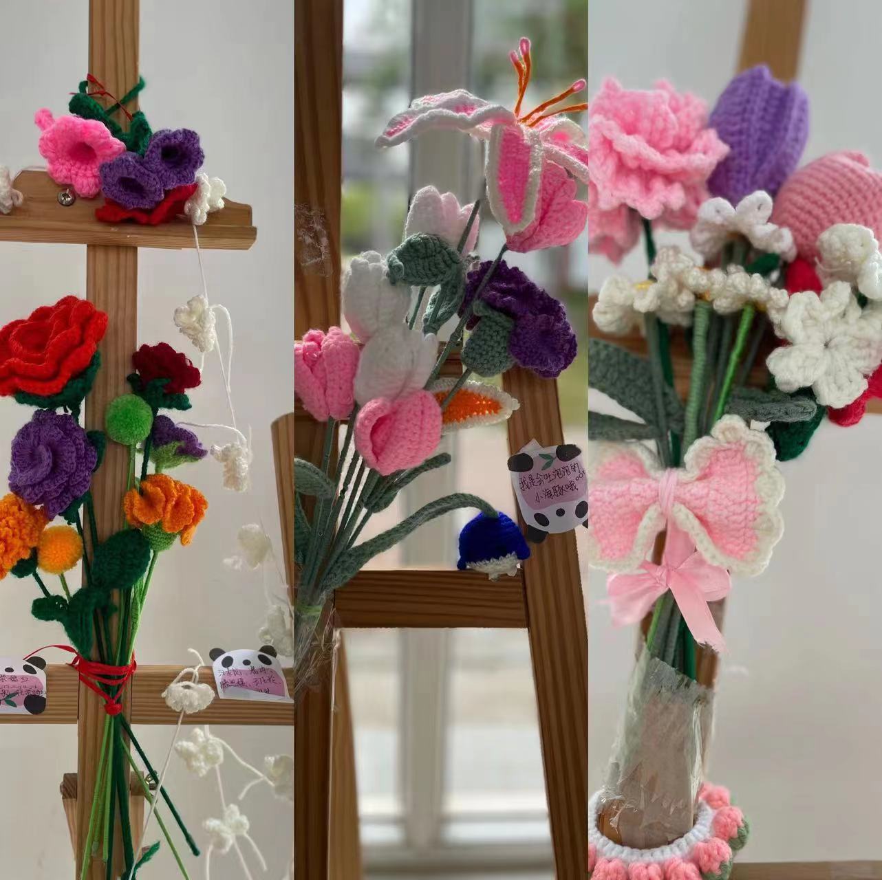 加速劳动教育创新发展,用创造性劳动传承劳动精神。为进一步发扬传统技艺,传承劳动精神,由商学院组织开展的“钩画春天”劳动教育系列活动在校园内引起了广泛关注。同学们利用毛线“钩画”美丽春天。活动由熟练钩花的学生教新手的同学们进行基础起针再钩织,钩织的成品有郁金香、康乃馨、玫瑰等花卉品,有玩偶、发卡、钥匙包等流行品,还有党旗、国旗等红色文化文创作品。成品在商学院大厅展出后获得师生们的热烈关注和好评,在同学们的热情要求下,钩花作品开展了义卖活动,截止目前,具不完全统计已售出作品80余件。同学们将传统文化与创新相结合,将劳动实践与创业深入融合,让物质财富与精神财富同向同行。