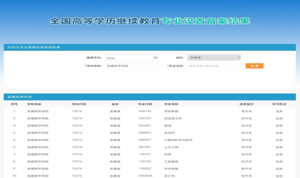 按照教育部和教育厅相关文件要求,学校对四个高等学历继续教育专业的申报工作高度重视,教务处、继续教育学院等部门密切配合,科学论证。申报材料在报省教育厅审批后,报教育部。教育部对高校新增专业进行重点评议,审核合格并予以备案和公布。新增专业学制均为2.5年,自2022年开始招生。
