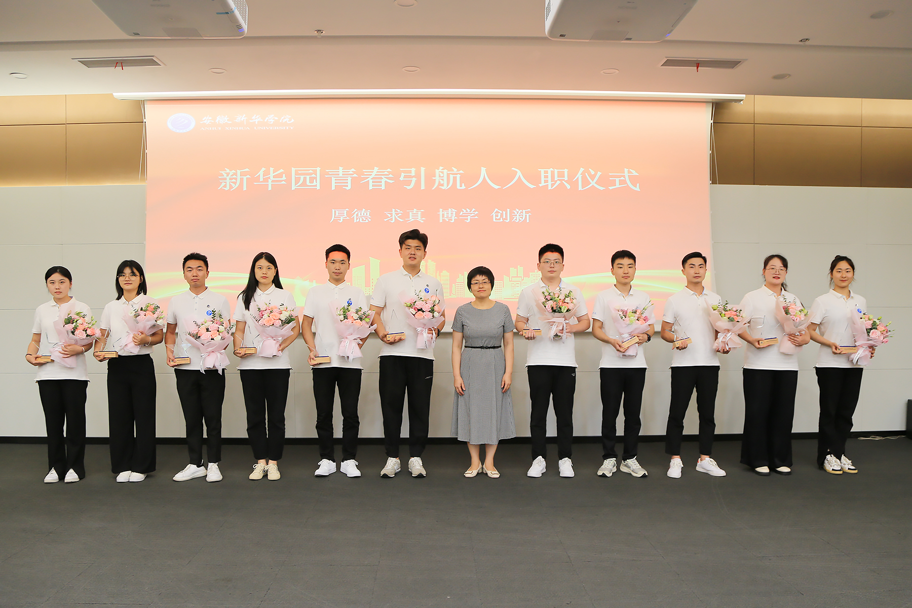 随后,21位新入职辅导员许下铮铮誓言,共同宣誓:“我志愿成为一名高校辅导员,拥护党的领导,献身教育事业,恪守职业规范,提升专业素养,情系学生成长,做好良师益友。为培养社会主义合格建设者和可靠接班人而努力奋斗!”进一步坚定了理想信念和初心使命。