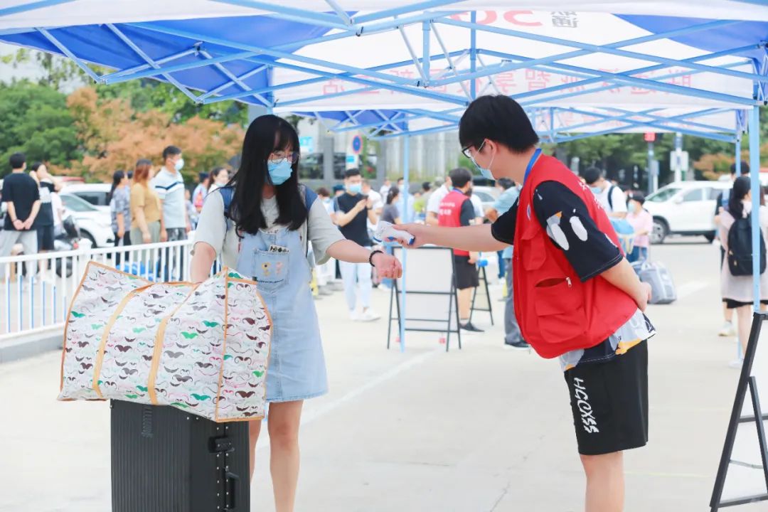 为了让家长们“放手又放心”,解决新生的行李搬运难题,今年,学校组织了1500余名学生志愿者,在汽车站、火车站设立接待点迎接新生。身着红色马甲的志愿者们更是组成了迎新志愿服务队穿梭在校园的每个角落,并协助学校后勤部门组织接送车,帮助新生搬运行李。