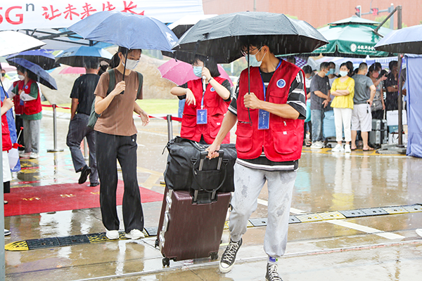 根据疫情防控要求,今年的新生报到现场,校园里已见不到陪同家长的身影,所有新生全部独立完成报到。当萌新们步入校园,仍有一些新生家长等在校门外,不舍离开。