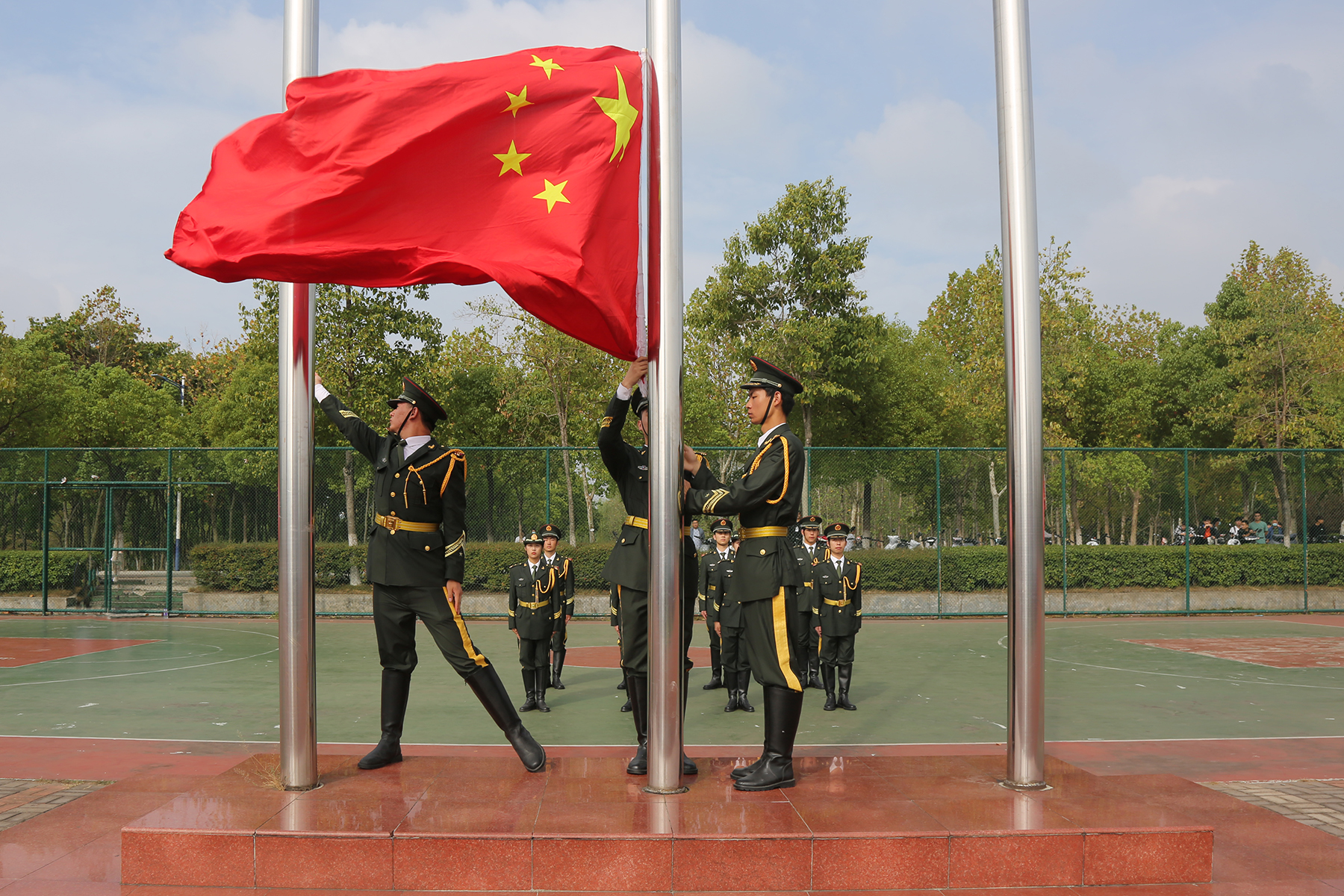 高昂的国歌声激荡祥云体育场,典礼正式拉开帷幕。