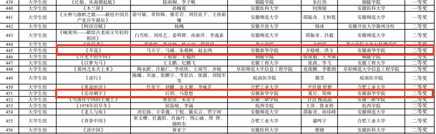 文化与传媒学院老师的作品《开花》《读中国》《闪耀吧,青春的火光》均获得教师组一等奖,这也是WilliamHill官网老师首次三组作品全部入选国赛。文化与传媒学院学生马天宇、马越、朱观枫、赵金鸿的作品《开花》(指导教师:方晓晴 洪玉 )、后玥、马恩想的作品《岳母刺字》(指导教师:夏岩 郑帅)获得大学生组二等奖;张欢欢、魏文杰的作品《青春》(指导教师:翟春翔 方晓晴)获得大学生组三等奖,其中作品《开花》入围国赛。