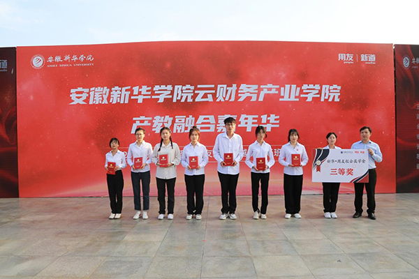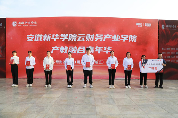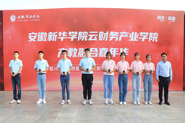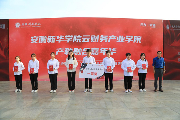 随后,王琦进宣读《关于授予吴佳瑶等104名同学新华•用友校企奖学金的决定》,各位领导为荣获新华•用友校企奖学金学生代表进行颁奖。
