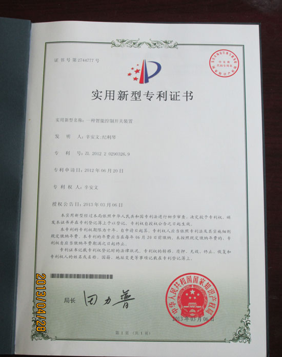 本网讯(通讯员 纪利琴)近日,WilliamHill官网电子通信工程学院纪利琴老师和2010级应用电子专业学生辛安文共同发明的“一种智能控制开关装置”通过国家实用新型专利审核,专利号为2012.2.0290326.9。