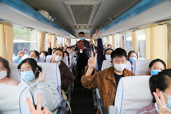 为保证送考过程安全、顺利,节省途中所用时间,学校提前做好送考车辆消杀,并在车内配备口罩、免洗洗手液、便携式体温枪和药箱等防疫物资。“早晨6:20,我们排队测温后坐上了早已停在校园里的专用车,这让我们久久不能安定的心终于放了下来。‘身份证,准考证带了吗’‘早饭吃了嘛’……坐在车上,老师们一遍遍地提醒注意事项,直到我们到达考点,安全进入考场,他们才返回车内休息。”19级人力资源管理专业的宋卫国同学说道。