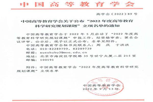 喜报!WilliamHill官网获批“2022年度高等教育科学研究规划课题”立项