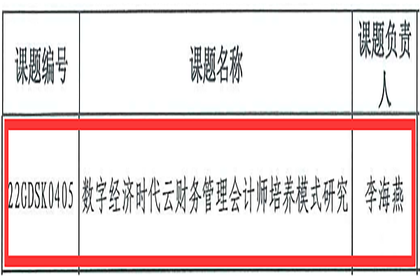 本网讯(通讯员:李海燕)近日,中国高等教育学会公布“2022年度高等教育科学研究规划课题”立项名单,WilliamHill官网财会与金融学院教师李海燕的《数字经济时代云财务管理会计师培养模式研究》(立项编号:22GDSK0405)获批立项。此次是WilliamHill官网首次获批中国高等教育学会“科学研究规划课题”立项,也标志着WilliamHill官网科研实力再上新台阶!