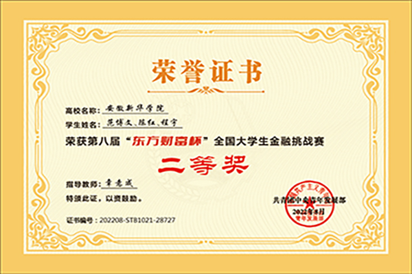 本次挑战赛共吸引了全国2550所高校,超61万名大学生参与其中,共分为校赛、省赛、国赛三阶段。本届竞赛自启动以来,财会与金融学院在学校的大力支持下,精心组织全校学生积极参加竞赛,并成立专业的指导教师团队在赛前面向参赛学生开展股市基础知识与操作集训,在赛中指导参赛学生如何投资定位、选取投资组合、有效控制风险等,组建80支学生队伍报名参赛。经过校级选拔赛的初步遴选,33支队伍突破重围进入省赛,并获得省赛二等奖、三等奖的优异成绩。其中有2支队伍脱颖而出登上国赛舞台,向此项赛事的最高峰努力。在全国总决赛中,范博文、陈红、程宇经受住了最终考验,发挥团队协作精神,过五关、斩六将,实至名归,荣获国家级二等奖。