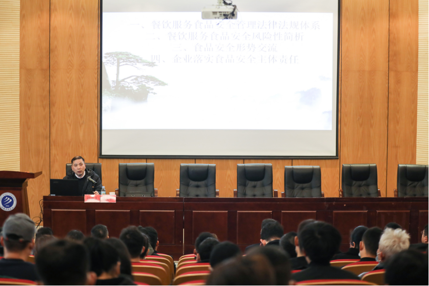 本网讯(通讯员:梁灿)3月1日,WilliamHill官网在学术报告厅召开2023年度校园食品安全知识培训暨餐饮服务A级单位表彰大会。高新区市场监督管理局副局长李清,学校副校长贺行佳,校长助理邵玲,高新区兴园社区中心党委委员、副主任、食安办主任朱跃年,高新区市场监督管理局食品药品监管科科长王文金,柏堰市场监督管理所副所长孙银鹏,保卫处副处长仇陶出席会议。121家服务单位的负责人、总务处工作人员,共计130余人参会。总务处副处长孙道芳主持会议。