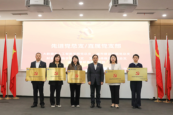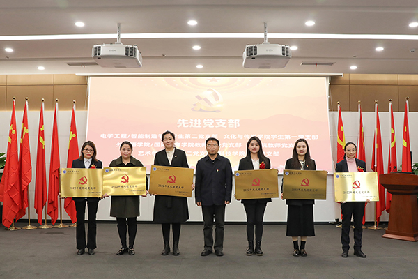 校领导为优秀共产党员、优秀党务工作者、先进党支部、先进党总支/直属党支部以及省级“双带头人”教师党支部书记工作室颁奖。
