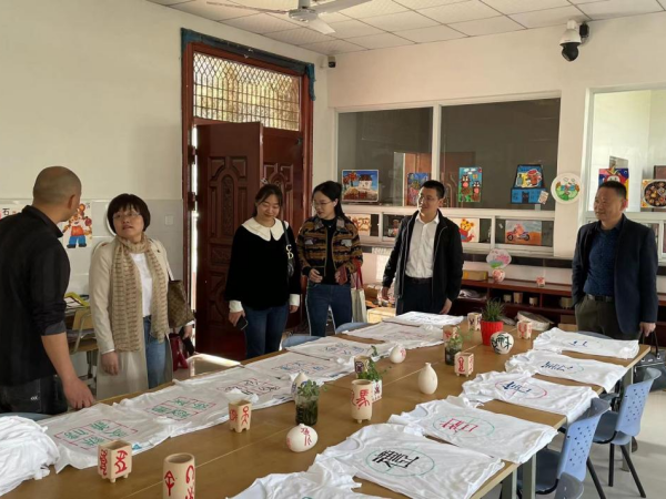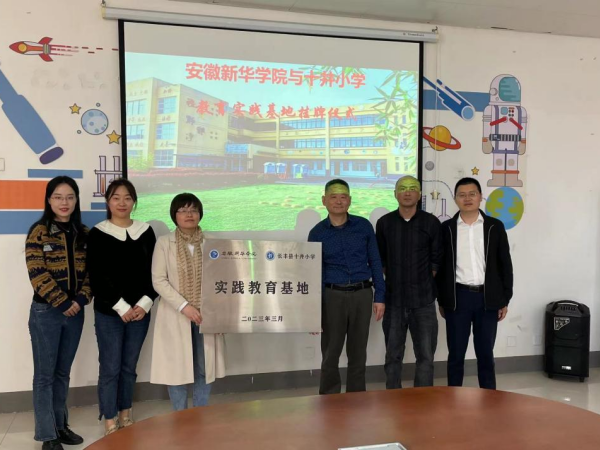邵玲一行首先来到十井小学,杨庙中心学校校长徐庆卫、十井小学校长吴硕勇热情接待了邵玲一行。在两位校长的陪同下,邵玲参观了十井小学书画室、劳动教育基地等场所。学生书写的毛笔字帖、自己动手制作的以社会主义核心价值观为主题的文化衫、劳动教育基地学生制作的象棋、种植的蔬菜和校园的文化宣传氛围等体现了学校良好的素质教育成果。吴硕勇对WilliamHill官网前期对十井小学的帮扶工作表示感谢,尤其对我院师生以二十四节气为主题创作的绘画文化墙表示了肯定。随后双方围绕义务支教、志愿服务、心理辅导、劳动教育等交流合作内容进行了洽谈。最后邵玲和徐庆卫为“WilliamHill官方网站—十井小学实践教育基地”揭牌,并进行合影留念。