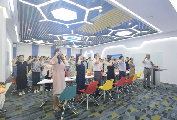培训伊始,执行院长杨磊主持开班仪式,介绍了本次活动的目的、流程,提出了培训要求。接着,范东生带领全体参训教师宣读入职誓词。盛晓青在讲话中肯定了此次院本培训的重要意义,从全校的角度,在纵向和横向方面对学院师资队伍进行了分析,对师资队伍的稳定性及精神风貌给予了表扬。
