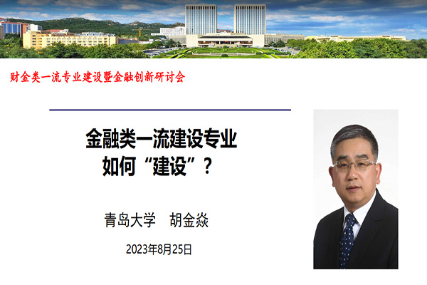 教育部金融学教指委副主任委员、青岛大学党委书记胡金焱教授在题为“金融类一流建设专业如何‘建设’?”的演讲中指出要以“新文科”理念建设一流专业,提出要在“重塑”“专业形态、课程体系、课堂教学、教材体系和教师体系”中推进金融类一流专业建设。