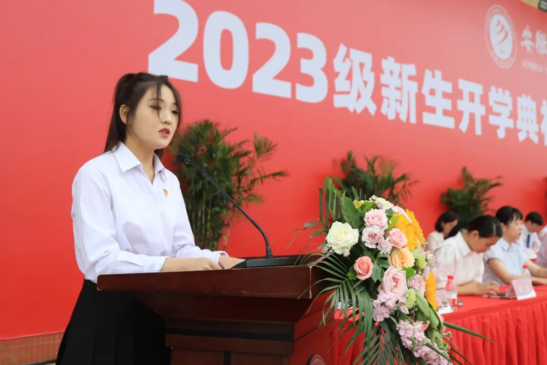 来自电子工程学院/智能制造学院2023级学生周阳作为新生代表上台发言。