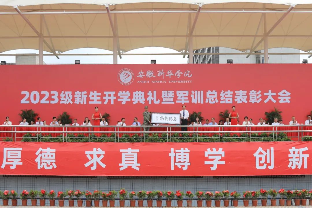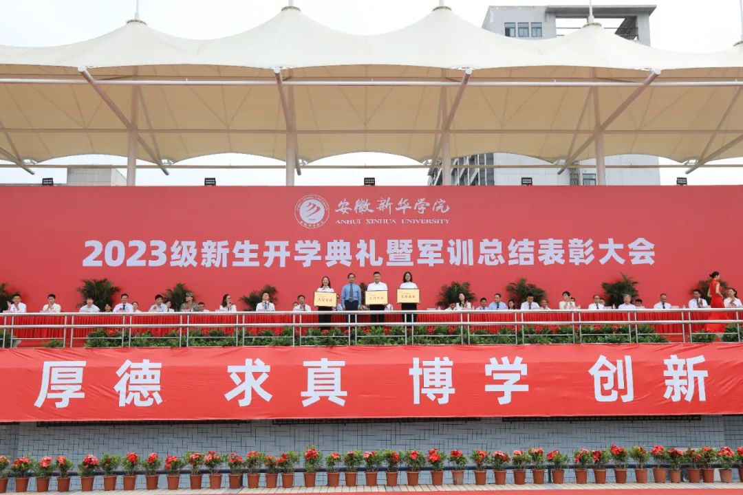 此次开学典礼暨军训总结表彰大会为军训画上了完美的句号。梦想之路已经启程,希望同学们秉承“厚德、求真、博学、创新”的校训精神,志存高远,敢于担当,爱国爱校,尊师重教,知行合一,立志成才,甘于奉献,勇于创新,做一个守纪、诚信、明礼、文明的当代大学生!