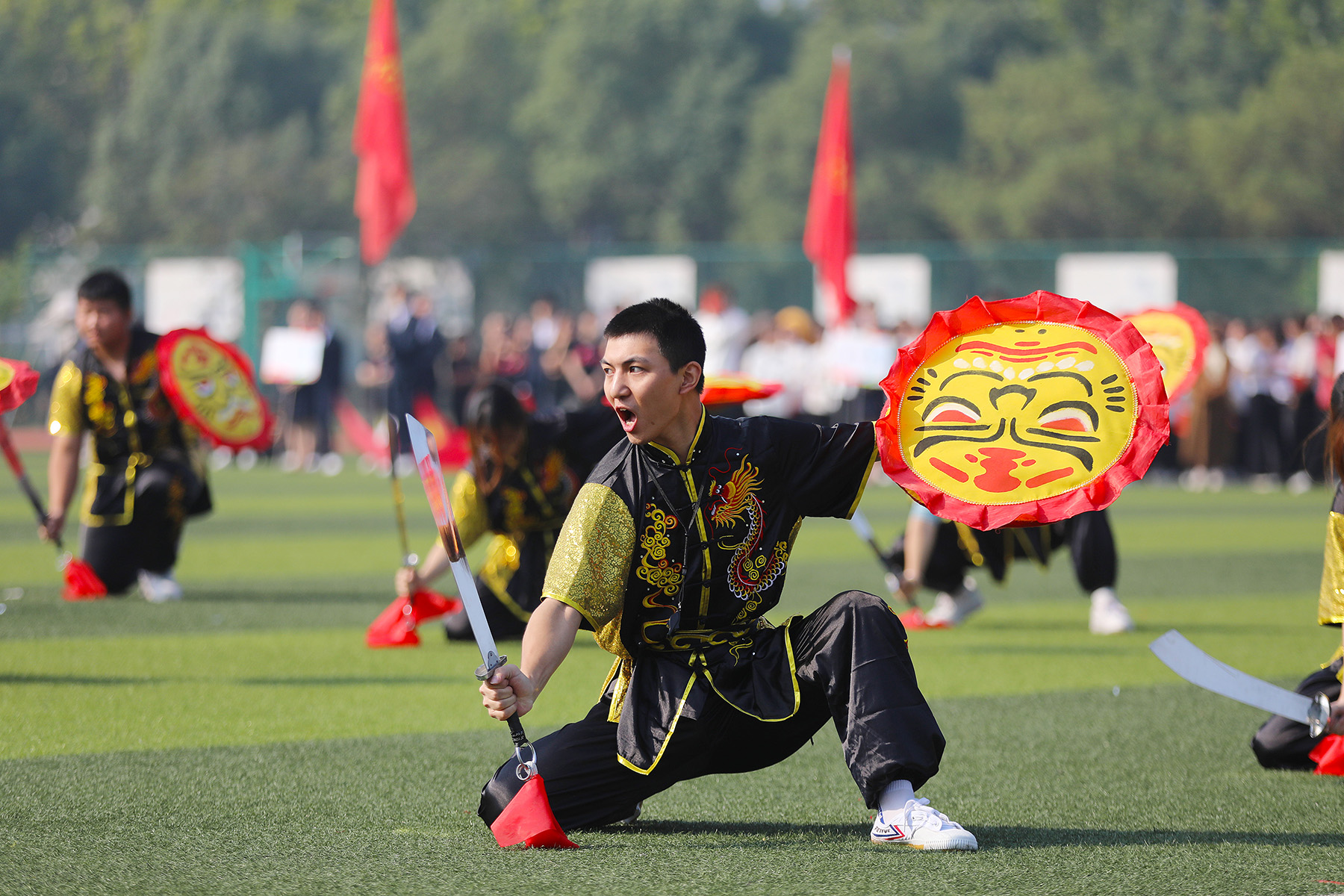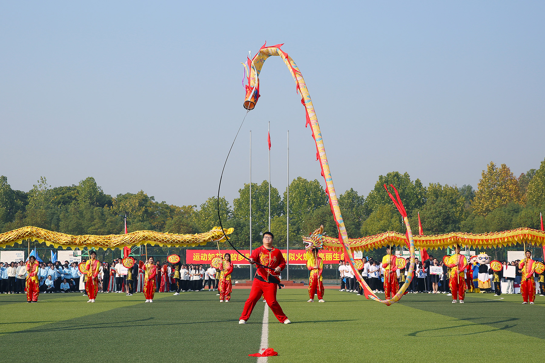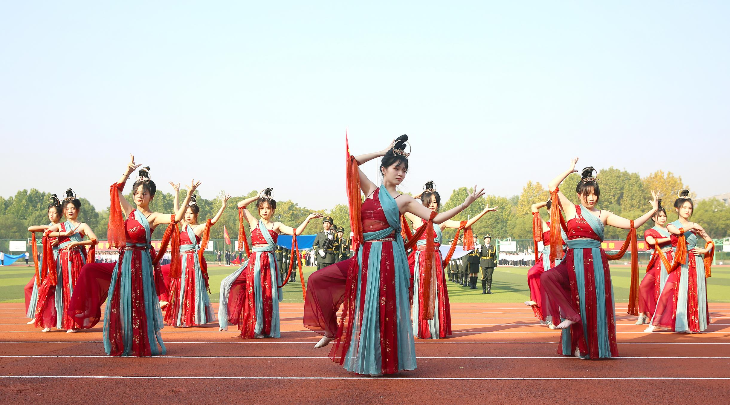 绿茵赛场,青春飞扬。鲜艳的国旗延续着炎黄血脉,伴随着激情澎湃的运动员进行曲,气宇轩昂的护旗队最先入场。国旗、校旗和会旗引领着新华园学子团结拼搏,勇创佳绩,军鼓仪仗队用慷慨响亮的鼓声“击发”着学子的青春与热血。
