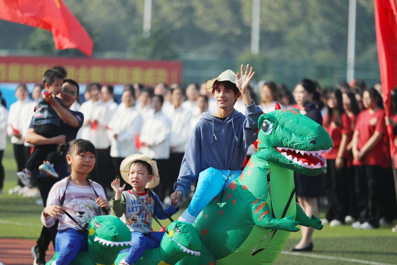 青春活力,精彩纷呈。各二级学院方阵依次走过主席台。“出彩中国语,学识贯中西”,外国语学院/国际教育学院学子昂首阔步亮相运动场,她们带来的《寻梦敦煌》,用霓裳一舞邀大家共赴一场“敦煌美梦”。“精工制造、实学信通”,电子工程学院/智能制造学院学子齐声呐喊“电智青年,未来属于我们!”。大数据与人工智能学院学子的传统川剧“变脸”表演将开幕式推向高潮。药学院学子身着创意“布洛芬”服装,与传统五禽戏表演相得益彰。艺术学院学子创意地将把PS、AE等专业软件“穿”在了身上,展现出了敢于追梦、“艺”往无前的青春面貌。文化与传媒学院学子邀请可爱的学龄前小朋友们一同表演,将青春的颜色“染”在祖国花朵的身上。