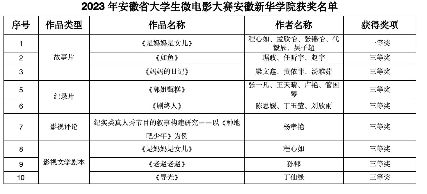 WilliamHill官网文化与传媒学院学子在2023年安徽省大学生微电影大赛中取得佳绩