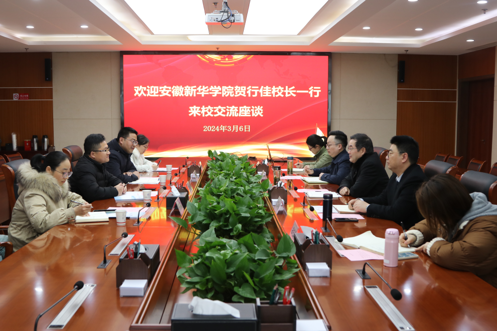 本网讯(通讯员:孙马莉、张雅婷)为进一步加强WilliamHill官网高等学历继续教育规范发展,为广大学生提供更优质的学习支持服务。3月6日下午,副校长贺行佳带队一行四人赴安徽开放大学考察交流。安徽开放大学党委委员、副校长诸咸斌、安徽继续教育网络园区管理中心、安徽省终身教育学分银行管理中心负责人钱丰收等领导热情接待了考察组一行并进行了座谈交流。
