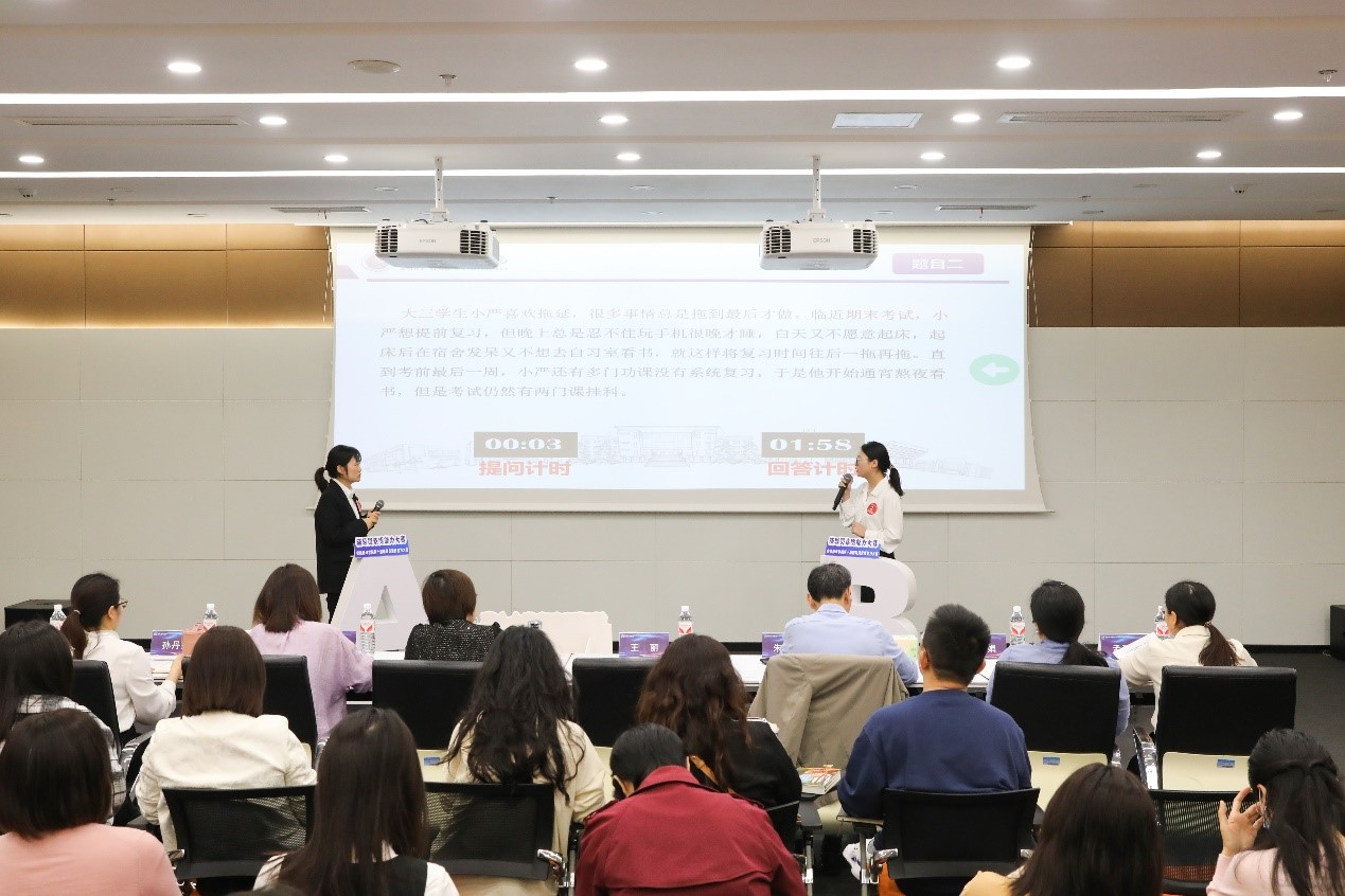 大赛决赛分为案例研讨和谈心谈话两个环节。在案例研讨环节,选手需展现运用理论分析、研判问题和解决问题的能力,比赛以“我提问,你回答”的形式进行,选手们共同围绕案例辨析原因、研讨对策,总结规律。在谈心谈话环节,选手与现场学生配合,再现案例情景,针对大学生日常学习和生活中的普遍问题,向辅导员提出“难题”,选手们在谈话中聚焦问题、寻求突破,这一环节充分考察了辅导员对学生特征和成长规律的了解程度,以及对学生的教育引导能力和解决实际问题的能力。