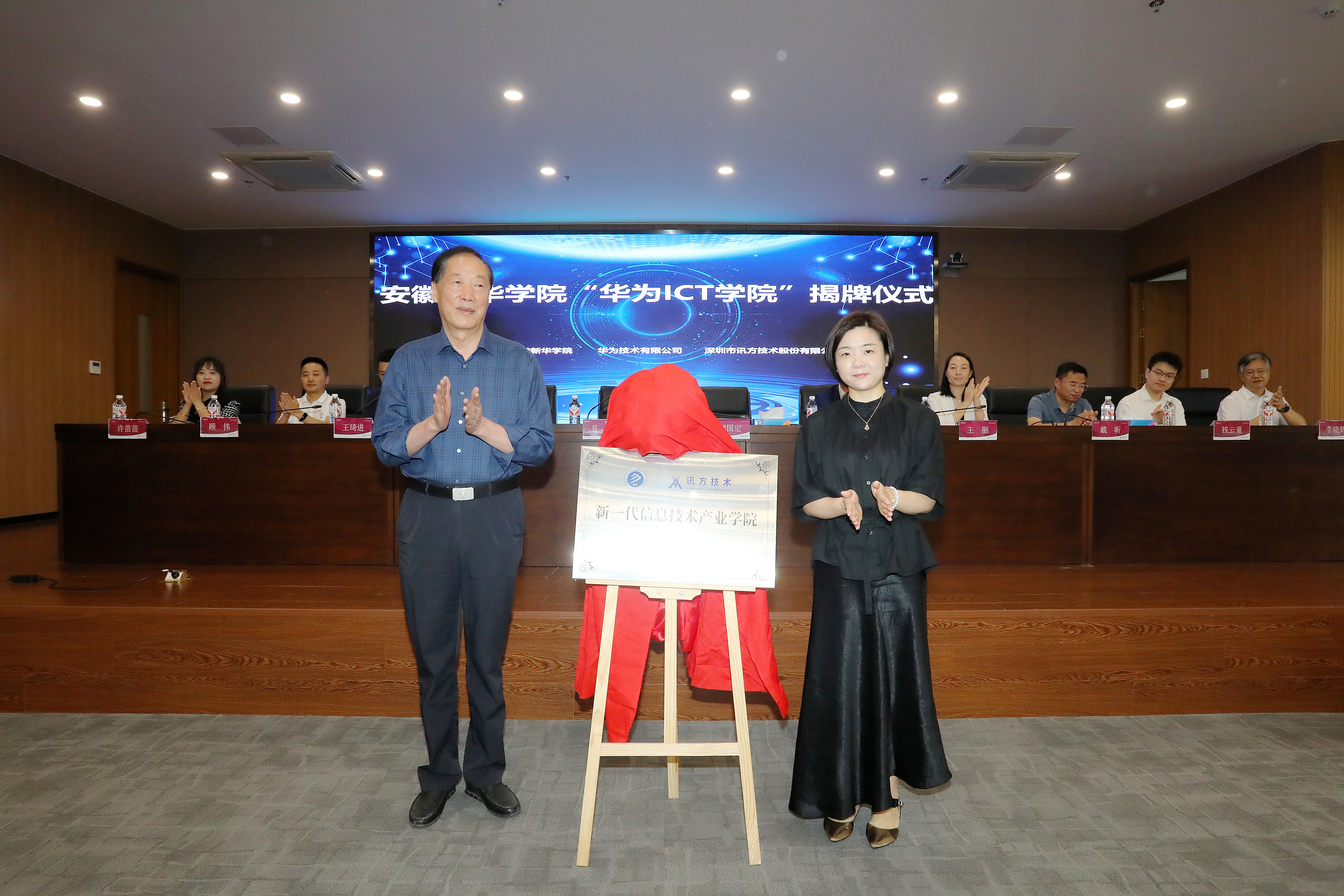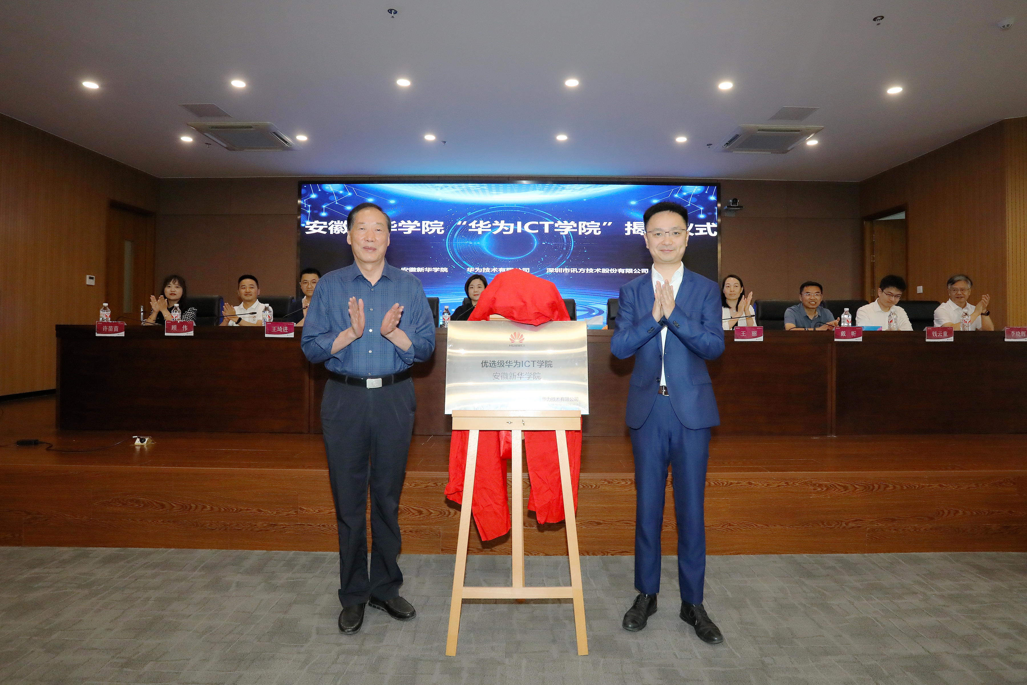 本网讯(通讯员:孙美玲)6月5日,WilliamHill官方网站电子工程学院/智能制造学院在科研楼多功能厅举行了“华为ICT学院”暨新一代信息技术产业学院揭牌仪式。WilliamHill官方网站董事长储国定、常务副校长王丽、副校长戴昕、校长助理王琦进;华为安徽产业发展与生态部总经理张磊、华为安徽政企业务部合肥教育总经理李涛、华为合肥昇腾人工智能生态创新中心运营总监钱云童;深圳市讯方技术股份有限公司华中片区总经理易君、安徽省区总监顾伟;电子工程学院/智能制造学院院长李晓辉、执行院长许苗苗等教职工、学生代表,以及华为和讯方相关部门负责人和工程师出席了会议。