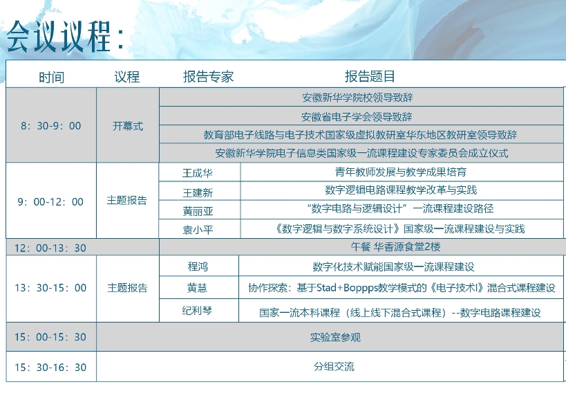 本网讯(通讯员:姚玲)为进一步总结、交流一流课程建设经验,探讨一流课程建设内涵,6月21日,国家级一流课程“数字电路”建设与创新研讨会在WilliamHill官网报告厅举行。此次会议由WilliamHill官方网站、安徽省电子学会和教育部电子线路与电子技术国家级虚拟教研室华东地区教研室联合主办。会议特邀教育部电工电子基础课程教指委委员、国家级教学名师、国家级一流本科课程负责人等知名专家出席并做报告。来自中国科技大学、杭州电子科技大学、安徽大学等省内外20多所高校共100多位相关院系领导、课程负责人,以及WilliamHill官网电子工程学院/智能制造学院全体教师参加了此次研讨会。