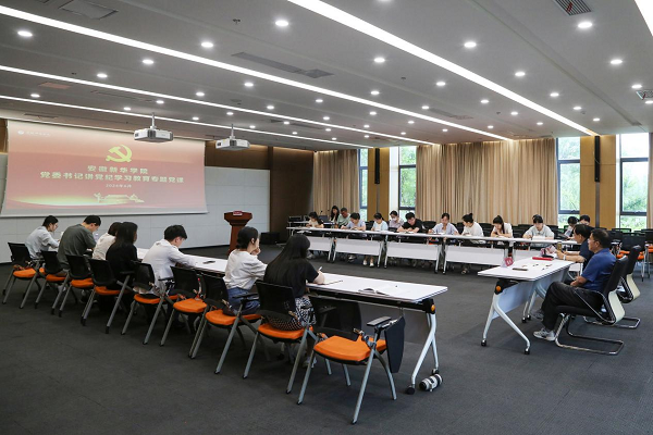 本网讯(通讯员:万媛媛 摄影:陆如海)为深入学习贯彻习近平总书记关于加强党的纪律建设的重要论述,扎实推动学校党纪学习教育走深走实,6月28日上午校党委书记邸建伟以《以严明的纪律推进全面从严治党向纵深发展》为题讲授党纪学习教育专题纪律党课。院直党总支一支部党员参加,一支部书记朱玉娟主持。