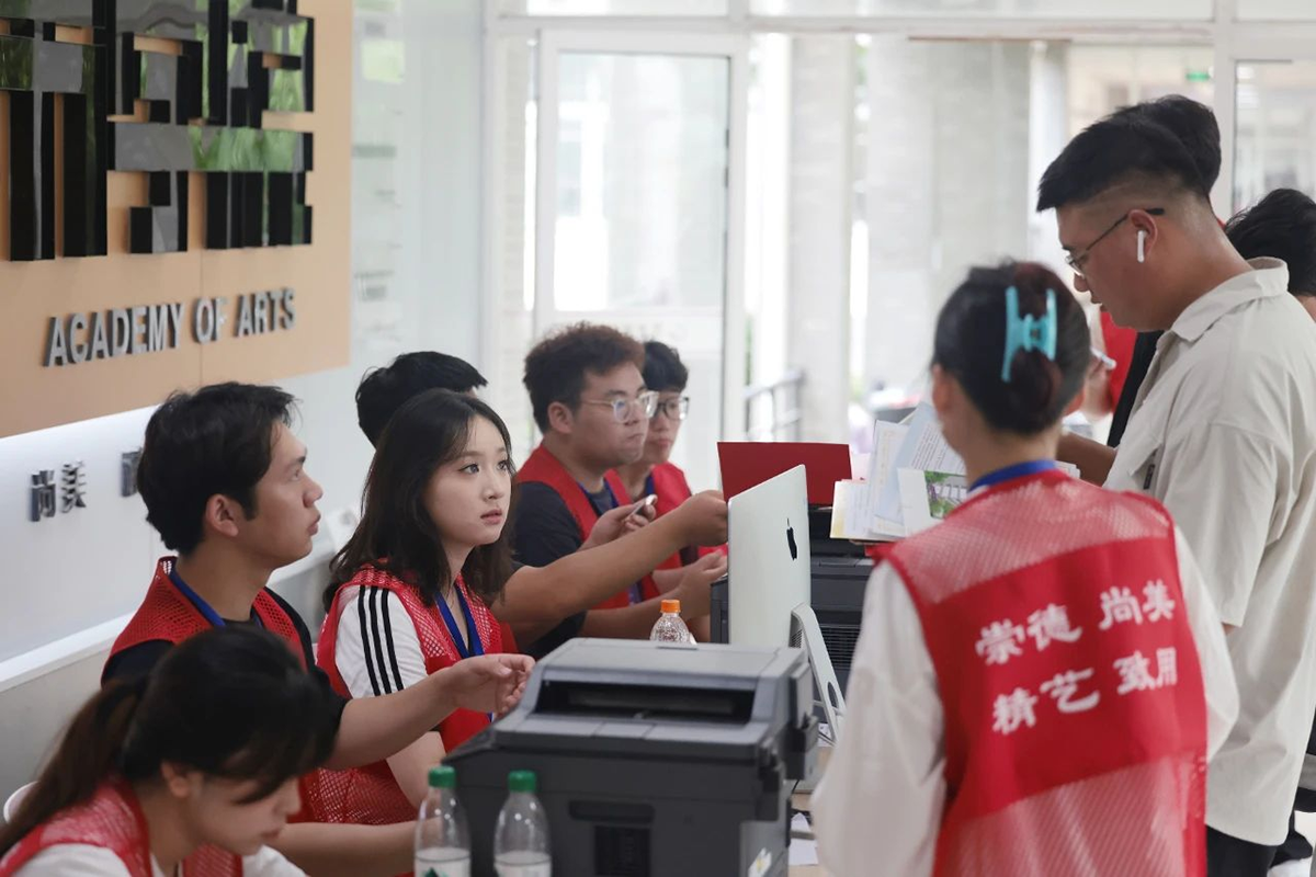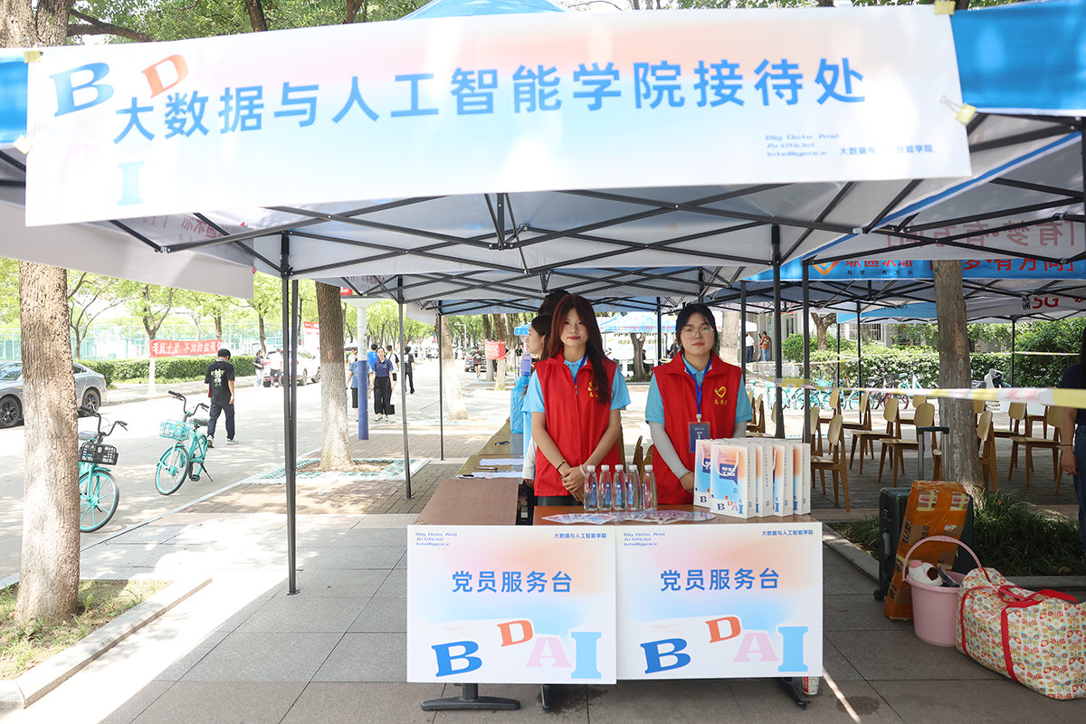 今年,全校党员师生充分发挥先锋模范作用,各学院新生入学报到点均设置了党员服务台,各学院党总支书记亲临报到现场指导工作。服务台党员积极帮助新生寄存行李,引导大一新生办理入学手续。“我们以党员的标准来要求自己为新生服务,发自内心地、热情积极地为新生服务。”学生预备党员、外国语学院22英本2班朱青山同学话语里透着坚定。