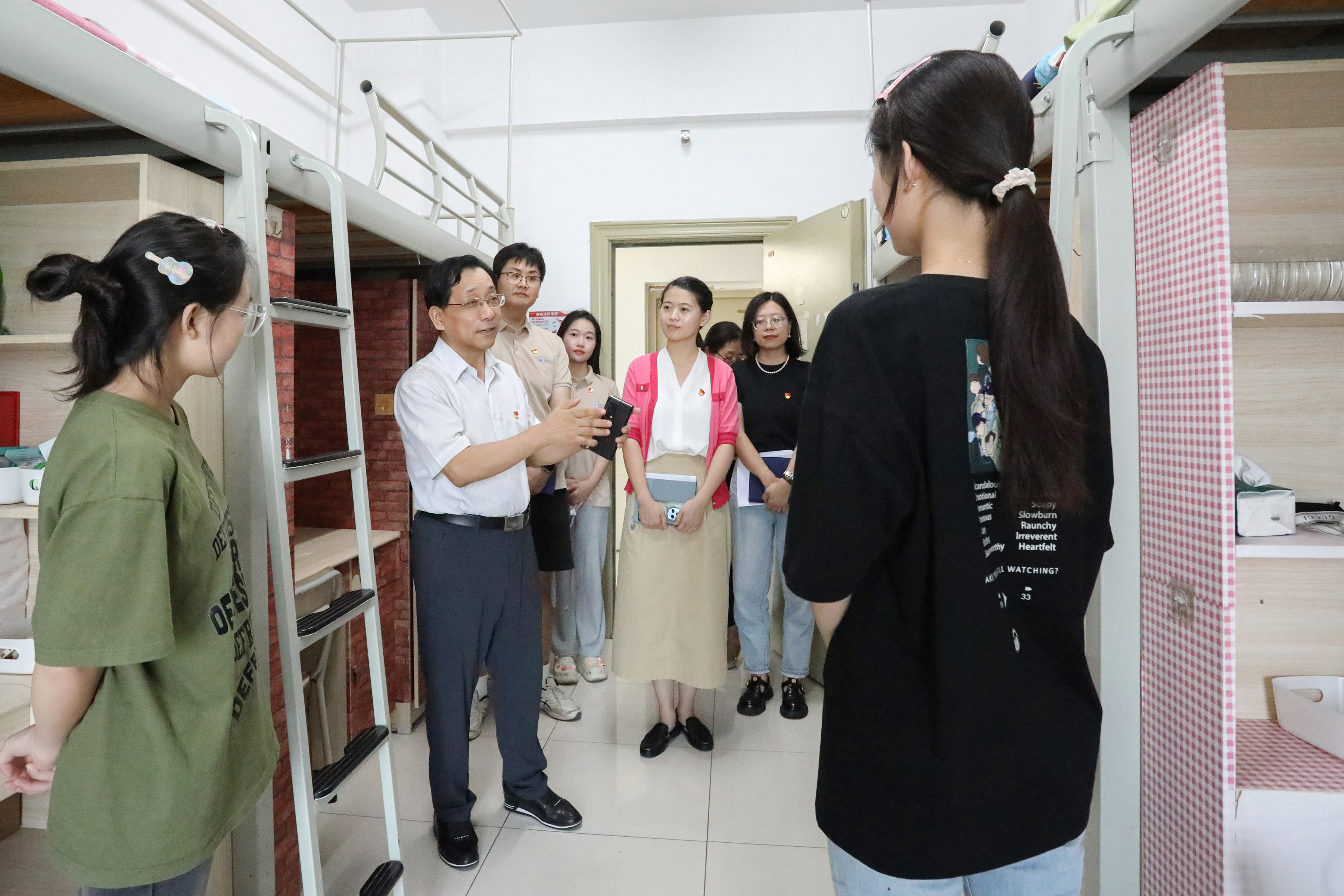 本网讯(通讯员:王亚君 融媒体工作室/王娟 摄影:翟漱文  陆如海)8月31日晚,校党政领导班子在各学院负责人的陪同下分批前往新生宿舍,“零距离”走进新生,倾听心声。