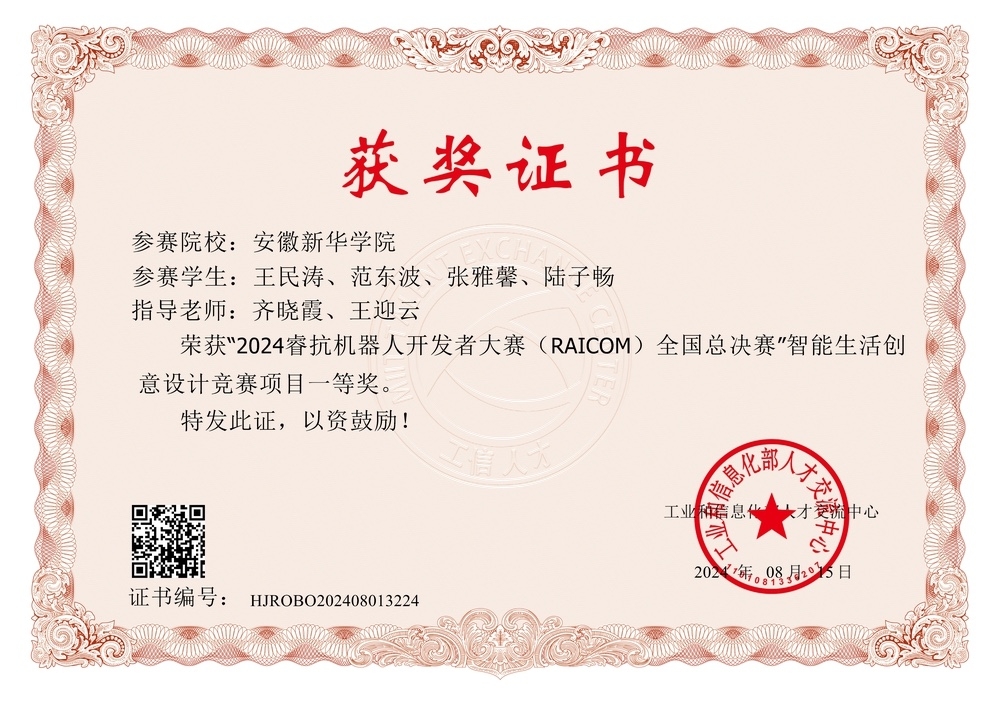 本网讯(通讯员:齐晓霞)近日,“2024睿抗机器人开发者大赛(RAICOM)CAIA 数字文化创意赛道全国总决赛” 在浙江省杭州市人工智能小镇成功举办。在本次大赛中,由WilliamHill官网齐晓霞和王迎云老师带领,王民涛、范东波、张雅馨、陆子畅同学组成的团队表现出色,荣获智能生活创意设计竞赛项目一等奖!